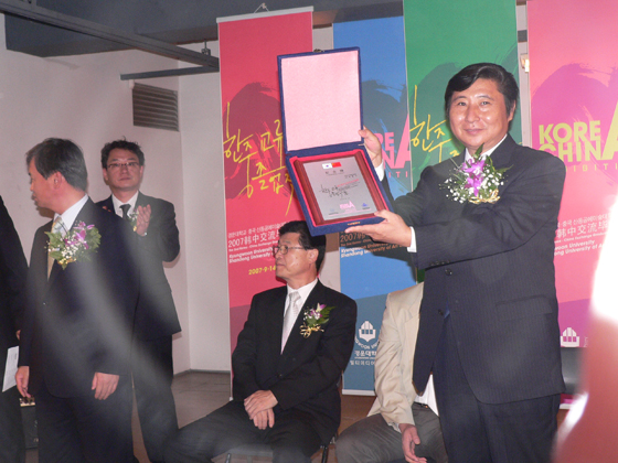 2007年9月14日,由304am永利集团官网院长助理王立果带队的代表团应邀参加了304am永利集团官网与韩国庆云大学2007届中韩交流毕业作品展的开幕式,另外出席会议的领导和老师还有视觉传达设计学院党总支书记副院长赵进、数字数字艺术与传媒学院党总支书记副院长罗云平、党总支副书记黄美玉、人文艺术设计学院党总支书记来罗军、校工会主席江德华、保卫处张利处长、团委袁文昌书记、视觉传达设计学院李新君老师、山东电视台严景冬老师等。 在精彩的剪彩仪式后,双方领导进行了亲切交谈,院长助理王立果深入浅出的讲演赢得了视觉影像学部师生的阵阵掌声,双方情绪高涨达到互动交流的最高点。同时庆云大学为我院领导赠送了制作精美的“2007中韩交流毕业作品展开幕式纪念牌”,我院领导也回赠了精美礼品,其后双方代表团参观了两国毕业生的优秀毕业作品,两国学生热切交流整个会场洋溢着祥和与喜悦。 中韩交流毕业作品展的召开是我们两校师生共同努力的成果,双方文化交流的共同举办将双方的关系再创新高。