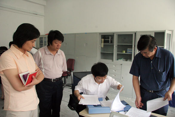 院长一行首先查阅了应用设计学院教学评建材料、教学日历、教学大纲等文字材料。