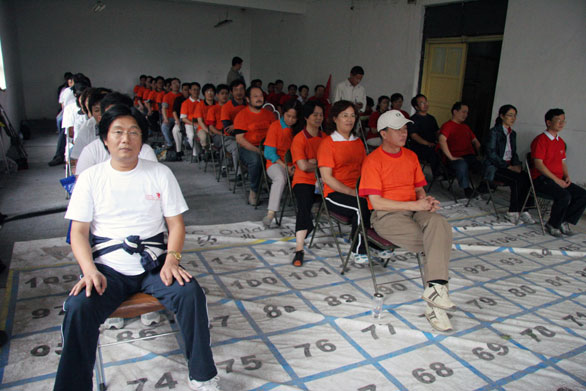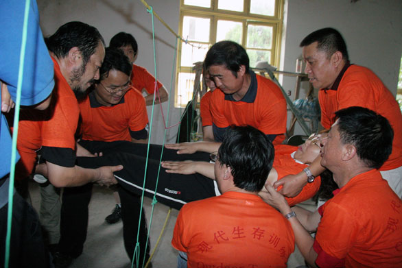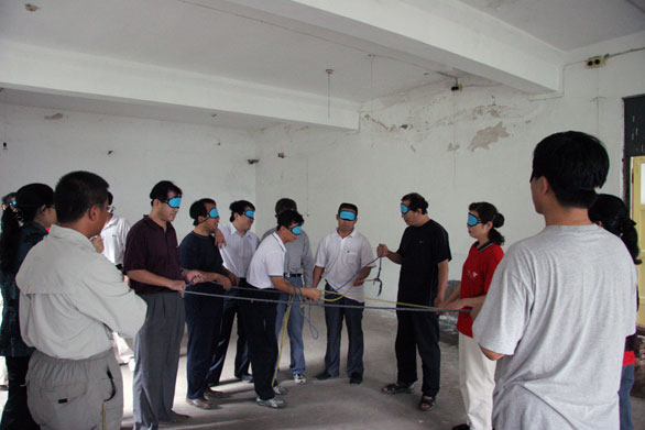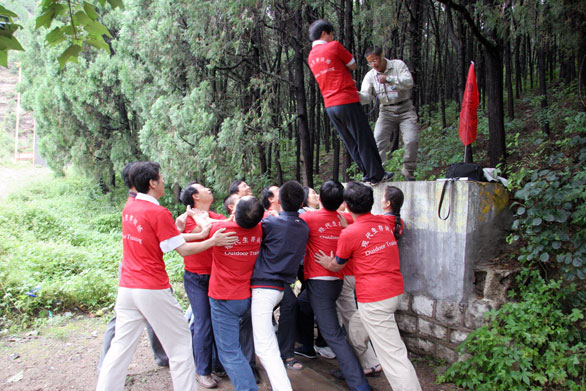 本次素质拓展培训活动从09:00一直进行到16:30,50多名参训成员分成三队。首先,由培训教练为参训队员讲解了素质拓展训练的由来和在训练中应注意的事项。随后,按照要求,三支参训队伍在团体协作下,拟定了队旗、队训、队歌等,展示了本队的才智魄力和精神风貌。