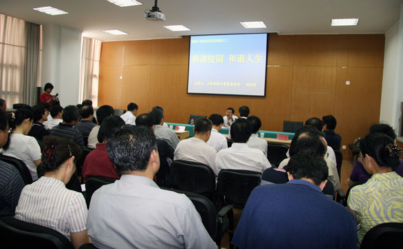 刘向信书记此次报告的题目是《和谐校园,和谐人生》。围绕“和谐校园建设”这一主题,刘向信重点阐述了为什么建设和谐校园和怎样建设和谐校园两方面的内容。他指出,建设和谐校园是建设和谐社会、促进学校健康发展和培养合格专门人才的需要。刘向信说,要建设和谐校园,必须做好四个方面的工作。要加强学校理想信念建设,依靠共同信念团结人心,营造和谐的校园氛围;要加强学校制度建设,依靠制度规范行为、制约权力、体现公平;要加强干部队伍建设,要培养一支想得高明、干得利索的干部队伍;要加强领导素质建设,进一步健全完善党委领导下的校长负责制,正确处理权责关系,真正实现干事、创业、育人、建章、树风的目标。谈到“和谐人生”时,刘向信指出,和谐人生就是一生顺利、为社会作出应有贡献、物质精神生活水平较高、家庭生活幸福平安的人生,既有外在的条件,也有内心的体验。和谐人生是一种战略,是一种理想,更是一种艺术。要实现和谐人生,就要将高尚的人品与高超的处事艺术有机结合,时刻保持进取、宽容、朴实、淡泊的心境,克服恶、贪、偏、虚、玩等恶劣品行。最后,刘向信说,和谐人生是人生的目标,是人生努力的过程,是社会和谐的基础,是社会进步的标志。希望与会各位都能以善良的心地、良好的处事艺术营造出属于自己的和谐人生。