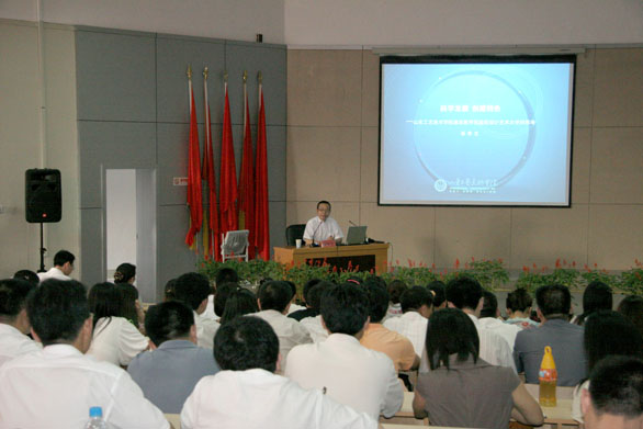 在千佛山校区阶梯教室作题为《科学发展 创建特色——304am永利集团官网建设教学实践型设计艺术大学的思考》的报告。党委组织部、统战部部长孙芬主持报告,党委宣传部副部长张振羽、人事处处长韩世春、教务处有关人员及永利官网全体教师听取了报告。