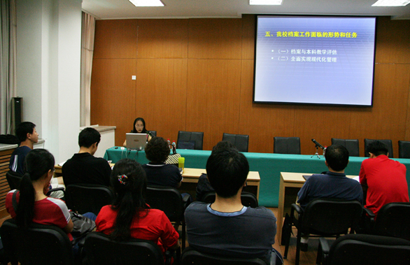 此外,学校档案室主任蒋松作题为《永利官网发展中的档案管理与建设》的讲座,介绍了学校档案工作的基本情况、档案工作常规管理办法、永利官网档案工作的特色与创新、面临的形势和任务等;学校办公室秘书科科长王任作题为《公文写作知识概述》的讲座,介绍了公文的概念和分类、公文写作的基本要求、常用行政公文和基本格式、学校公文办理实务等;学校行政科科长代江涛组织观看了《人民大学教授金正昆商务礼仪》。据悉,18日办公室主任培训工作还将组织座谈、讨论和考试 。