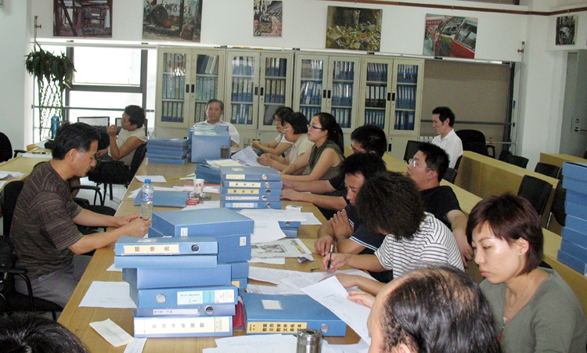 造型艺术学院暑期评建准备工作主要分三个阶段进行:一、自查阶段。在学校统一检查之后,再进行一次自查,在了解共性的基础上,充分了解本院自身的薄弱环节,针对出现的问题拿出整改方案。二、整改阶段。动员全体教师,根据检查中提出的意见和建议,按照整改方案进行全面整改。对于整改过程中遇到的实际问题再集体讨论,找出合理的解决方法。三、整改成果验收阶段。全面检查整改措施的落实成效。合格的材料整理存档,根据责任到人原则,对于不合格的材料由责任人再组织整改、完善。