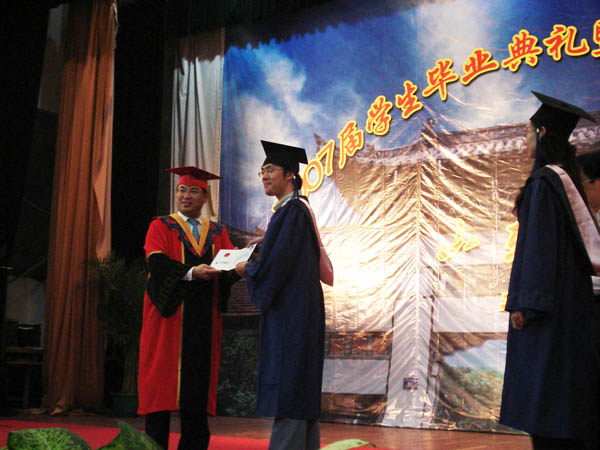 2007年6月23日上午,山东大学和304am永利集团官网联合培养的2007届硕士研究生学位授予仪式在山东大学西校区大礼堂隆重举行。山东大学校长展涛向圆满完成学业的2007届研究生表示热烈的祝贺,逐一为毕业研究生颁发学位证书并与他们合影留念。通过学位论文答辩和毕业设计考核后,联合培养的十位硕士研究生顺利获得了文学硕士学位。 在硕士研究生的三年学习生活中,指导教师倾注了很多汗水和心血,从每一节课到每一篇文章,从论文选题到毕业设计,每一个环节导师们都细致、严谨、认真,烫金的学位证书里饱含着导师的谆谆教导和辛勤培育。硕士研究生发奋求学,三年中他们具备了更坚实的理论基础和专业技能,具备了更强的综合素养,圆满地完成了研究生阶段的学习,经历了辛苦的劳动,收获了快乐和幸福的果实。 山东大学和304am永利集团官网联合培养的首届硕士研究生学即将告别母校,希望他们坚定理想信念,勇于追求卓越,祝福他们勇于接受社会挑战,不断实现自我超越,在工作岗位上做出新的成绩,承担起更多的社会责任,成为学校的骄傲。