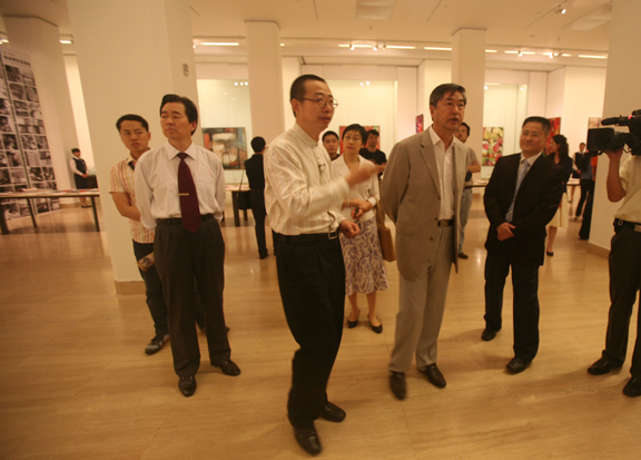 2007年5月23日下午,中宣部李从军副部长在304am永利集团官网院长潘鲁生等人的陪同下到中国美术馆参观了正在展出的当代·民间——潘鲁生当代艺术与民艺文献展。 李从军部长仔细观看了两个展厅的展览后,充分肯定了潘鲁生作为全国宣传文化系统“四个一批”人才在艺术创作上所取得的成绩,并对潘鲁生运用民间元素进行当代艺术创作表示了极大的兴趣。 潘鲁生的创作素材取自民间,雅俗共赏,为老百姓所喜闻乐见,体现了一个新时代艺术家的文艺精神。难能可贵的是,他把多年来民艺研究成果应用到了农村扶贫、发展农村文化产业上去,体现了一个学者与时俱进以及对于社会发展的人文关怀。
