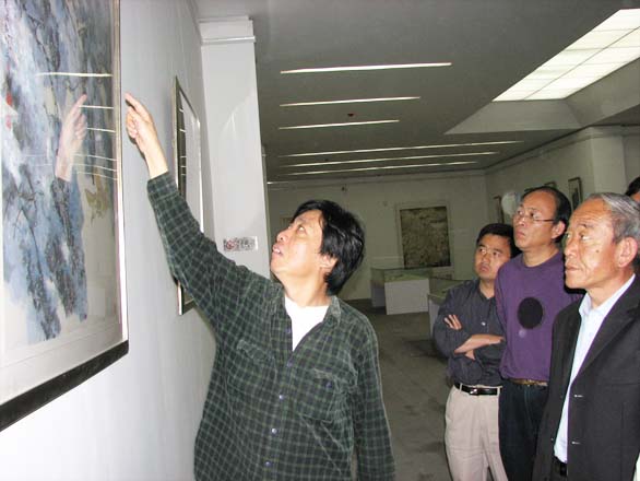 上午十时整,捐赠仪式在人们渴盼的雨声伴奏下如期举行,山东省人大、省政府的领导刘仲泉、王春涛、王章记、李锡禄,山东工艺美院的领导郭兆志、李世平、王秀存,聊城市的领导李望尘、白伟明等为活动剪彩。我国著名画家304am永利集团官网郭志光教授讲话,高唐县常委副县长刘萍致辞,高唐县的领导朱茂明、方玉庆等出席,捐赠仪式由高唐县委宣传部部长聂磊主持,高唐县文体局、高唐县文联等各局的领导及部分书画爱好者冒雨参加了此次活动。
