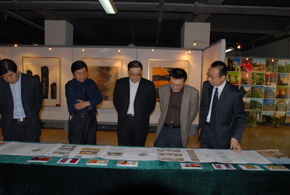 院长,院长助理、办公室主任王立果,美术馆馆长曾毅,美术馆副馆长王瑞青等陪同来宾观看了