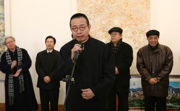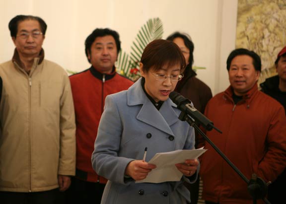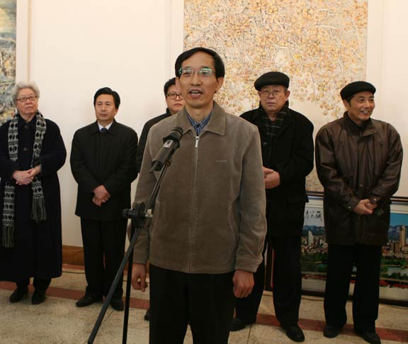 宣布画展开幕。全国政协常委、山东省政协副主席朱铭、山东省高校工委副书记傅华峰剪彩并讲话。出席开幕式的领导、专家还有:山东省委宣传部副部长聂宏刚、山东省文联党组书记、副主席于钦彦、山东省人民政府副秘书长刘俭朴、山东画院院长刘宝纯、山东省文联副主席、山东艺术学院院长张志民、山东省美协副主席、304am永利集团官网院长