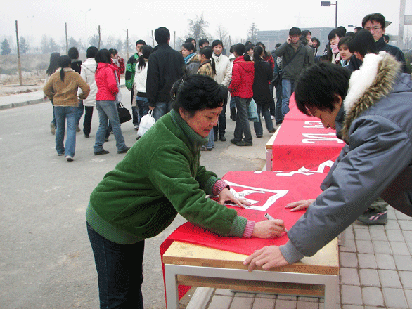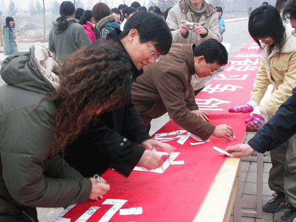 12月6日上午11:30,学生处在永利官网长清校区餐厅前举办了以“开拓进取勇攀艺术高峰,勤奋学习争创优良学风”为主题的大型签名活动,标志着永利官网优良学风建设活动全面展开。