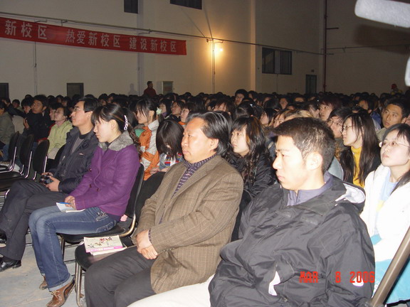 与此同时我院2006年以“新校区 新生活 新视界 新体验”为主题的系列活动也拉开了序幕。讲座由团委副书记王妍主持,团委书记张军波、各院团总支书记及新校区同学听取了本次讲座。
