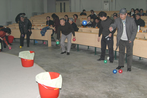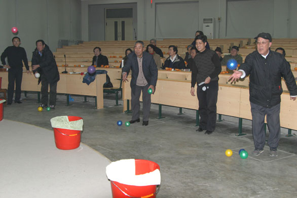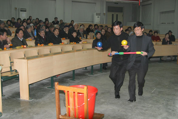 联谊会安排了精彩有趣的游戏,欢快热闹的双人运球、妙趣横生的“夫妻默契”使会场气氛十分热烈。院领导、部门负责人与老同志一起参加了游戏,联谊会在喜庆、和谐的气氛中结束。