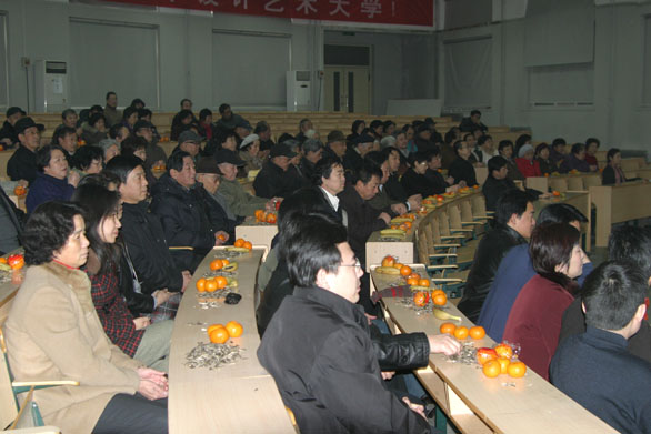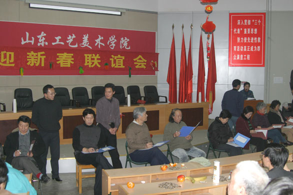 党委书记于茂阳向老同志致以节日的问候,并回顾了2005年我院获得硕士学位授予权、长清校区顺利启用、加入欧洲设计艺术院校联盟、举办2005全国视觉传达设计教育论坛暨首届“设计之星”全国大学生优秀平面设计作品展览、顺利开展保持共产党员先进性教育活动、进一步加强党建和思想政治工作、学生在全国及省级大赛中屡获大奖等成绩,指出2005年在我院历史上是重要的一年,对今后我院的发展必将产生深远影响。2006年,我院将进一步完善长清校区建设,更加集中精力抓教学,走内涵发展之路,提高教学质量,争取顺利通过教学评估。