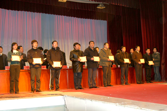 党委副书记郭兆志宣读了《关于表彰2005年度优秀党员的通报》。代江涛、张振羽、张利、滕丕强、孙大刚、王荔娇、尹春生、李兴华、李忠诚、李希进、陈慧、罗云平、解恒岩、金文涛、冯娜、车新新、张建平、杨亚波等18位同志被评为优秀党员,指导组及学院领导为优秀党员颁发了证书。