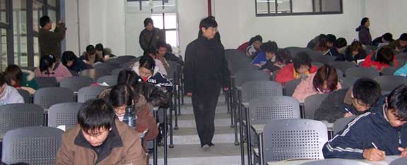 1月9日上午8:30,我院2005级新生入学后的首场期末考试在长清校区如期举行,这是学院长清校区启用后的首场期末考试。张云龙副院长到考场巡视。