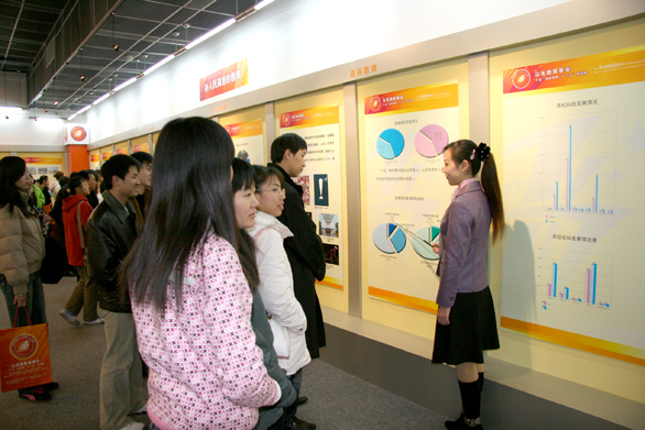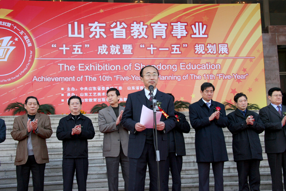 本次展览于11月26日上午在山东省博物馆正式开展。成就展分为五年巨变、基础教育、职业教育和成人教育、高等教育、上下同心共谋发展和“十一五”规划几大展区。展出形式以图板为主,图片、图表、文字相结合,简明直观地展示我省“十五”期间教育事业取得的巨大成就和“十一五”教育事业的发展规划。