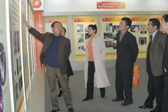 我院承办山东教育事业“十五”成就暨“十一五”规划展省教育厅厅长齐涛视察布展情况 [附图]