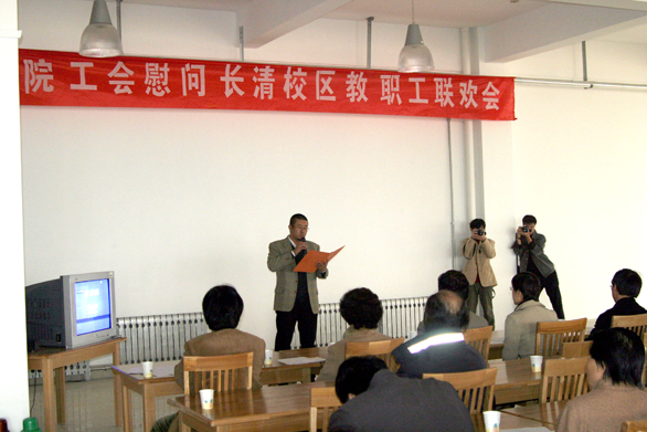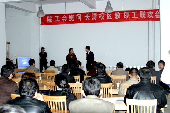 院工会对新校区建设指挥部、办公室、以及各系的教职工赠送了生活用品,表示慰问。在联谊会开始之前,刁在祥代表院领导发言,鼓励大家努力建设好我们的新校区,为新校区的建设多出一份力量,希望大家在以后的工作中团结一致,再接再厉做出新的成绩,为我院做出更大的贡献。