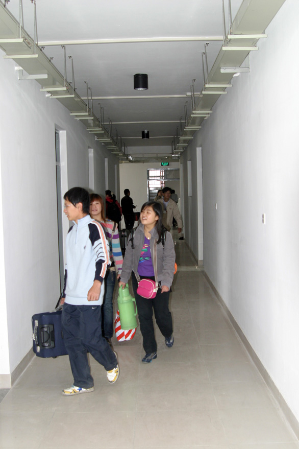 第一位进入学生公寓的装潢系书装二班董岩磊同学和第一个进入女生公寓的毕宜菲同学,向记者吐露了心里话,他们说,今天我们特别高兴,新校区真漂亮,我们终于有了自己的家!第一位进入住学生宿舍的04级装潢系本科一班张西兰同学说,来到新宿舍心情特别激动,感谢领导的关怀,感谢学校为我们提供了这么好的学习条件和生活环境,我们要加倍努力,刻苦学习,不辜负领导对我们的期望。来自邹平的一位姓杨的学生家长说,工艺美院长清校区地理条件好,交通便利、环境优美,校园宽敞,设施完善,为孩子成长提供了良好的环境,我们非常满意,希望学校做好安全保卫工作,保证孩子们的安全。
