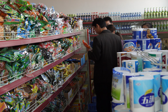 学生在超市选购物品