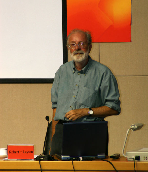 雷顿教授认为美学在非再现性艺术里,其价值常常通过对称结构或有节奏的重复来表达,而艺术的创造性常常表现在对那些创造出对称效果的“规则”的娴熟运用中。视觉传达是艺术的同义语,指有意识地运用规则的视觉形式并以此传达观念。这不要求其他人的审美标准同我们的恰好一致,因此在解读一种文化的艺术品时就很容易发生误读。某些视觉形式,如完全出于实用目的而运用技术制图,就可能不被当作艺术看待,因为它们缺乏与艺术相称的内容或形式方面的某些特性。雷顿教授在此次报告中还初步介绍了当前被人类学家普遍认可的关于“代理”的几种观点,他认为这种“代理”行为正是艺术借助特定的视觉符号传达其审美特性的一种功能。雷顿教授将在后两场报告中对此理论作出进一步的阐释。