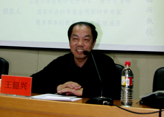 3月31日下午,院党委宣传部邀请山东大学政党研究所所长、博士生导师,国家社会科学基金项目评审专家,教育部本科教育评估专家组成员王韶兴教授在学院学术报告厅作了“关于和谐社会的几个问题”的报告。报告会由郭兆志副书记主持,院领导刁在祥、孙凤刚,离休老领导孙长林等一同与老师、学生党员、入党积极分子听取了报告。