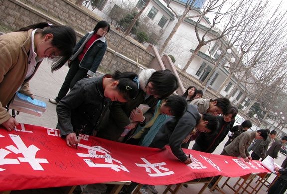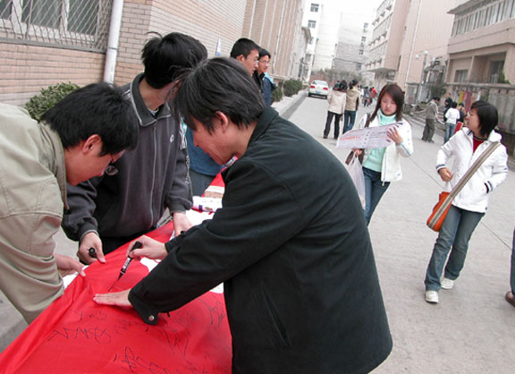 活动形式多样,以宣传图片、签字横幅和宣传单为载体,得到了广大同学的热心支持和广泛参与,许多同学在展板前驻足良久,观后反映受益匪浅。名字签在了横幅上,“安全第一”的意识也深深地印刻在同学们的心中。