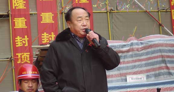 王秀存副院长也在庆祝仪式上发表了讲话。他首先向工地的工人师傅、甲乙双方第一线的管理人员、各位来宾,致以新年的问候和祝福。他说,今天我们出席这个隆重的仪式,心情非常高兴,这是一个具有纪念意义的日子,也是可喜可贺的日子。他高度赞扬了济南平安建筑集团自2004年9月15日复工以来所取得的成绩,并为之总结了五条成功经验:(1)有一支很好的施工队伍,特别能吃苦,特别能战斗。(2)有一个很好的项目管理班子,这个班子尽职尽责,指挥得力。(3)有一个很好的上级领导,关心到位,支持到位,保障有力。(4)当地政府、西区建设指挥部给与大力支持、保障。(5)监理公司、审计公司提供了有力的支持和帮助。希望济南平安集团发扬光大这些经验和传统,多做贡献。监理、审计公司负责人也分别对此次封顶表示了祝贺。