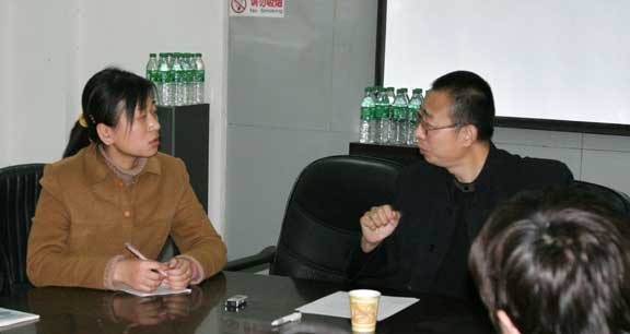 交流中,潘院长首先站在学院发展的角度上,分析了工艺美院建设的现状。他表示,学院倡导以教学为中心,以教师为主导,以学生为主体的教学理念,特别强调要把学生放在一个突出的位置上,不能误人子弟。