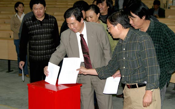 随后,与会人员以无记名投票的方式对学院领导进行了测评。