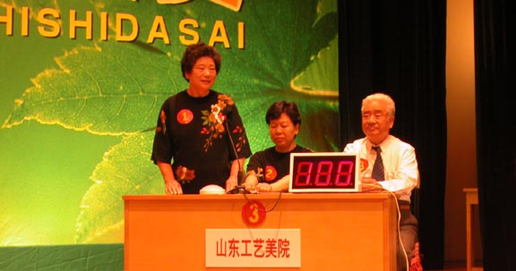 大赛进行得紧张激烈、如火如荼。在大赛间歇期间,老干部们向现场观众展示了自己的绝技,缓和了现场紧张的气氛。我院姜蕴华老师为大家奉献了一曲《我的祖国》赢得全场热烈掌声。