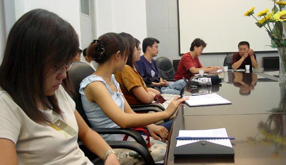2004年8月30日,由教务处、艺术学系主办的《民间艺术的挖掘与发展》座谈会在教务处会议室举行。304am永利集团官网艺术学系师生同清华大学美术学院艺术史论系师生就“民间艺术的挖掘与发展”这一课题进行了座谈。