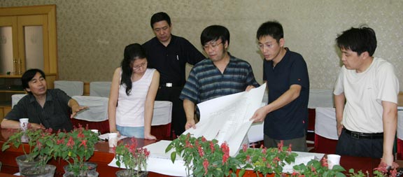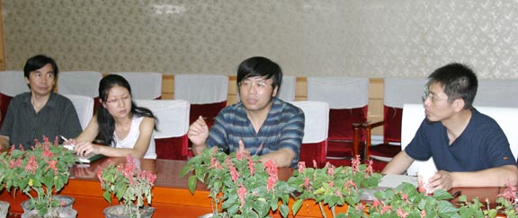 7月5日,山东省美术家协会副主席孔维克、山东省美术馆馆长陈国力、副馆长王建国来到我院,就我院承办“山东省庆祝建国55周年美展”设计和壁画展事宜进行考察。李新副院长接待了孔维克副主席一行,科研处唐家路副处长、设计艺术中心王瑞青副主任参加了座谈。