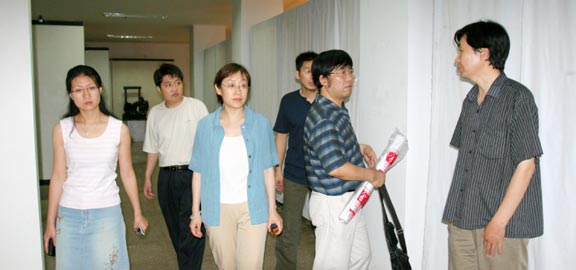 孔维克副主席一行考察了我院美术馆和大学生活动中心,对展出场地情况表示满意。双方还就展览的细节进行了商讨,李新副院长表示,我们将尽最大的努力,确保“山东省庆祝建国55周年美展”设计和壁画展的展出效果。