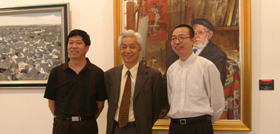 ,山东艺术学院院长张志民、山东师范大学美术学院院长孔新苗、发展大厦负责人等 。