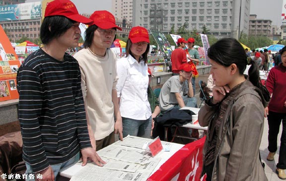 尽管市民们咨询的问题多而繁杂,我们的志愿者还是本着“热心服务”的原则给予了认真解答。值得一提的是市民们对学龄儿童的教育表现出了极大的热情,使得动画、绘画等专业咨询点场面异常火爆。志愿者们不仅耐心细致的帮助市民们分析解答了相关的问题,还对喜欢绘画的小朋友进行了耐心的绘画指导。在摄影咨询点,一位《济南时报》的摄影记者到摄影专业咨询点针对摄影方面的问题与咨询人员进行了交流。时近中午,到各咨询点咨询的人群仍然络绎不绝。
