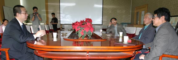 院长就学院的发展理念和教学理念作了亲切交流。这是自1985年以来,柳先生第二次来我院作学术交流。在交谈过程中,潘院长向柳先生介绍了我院近年来的发展理念和教学理念,提出以艺术学科为主导,工科与文科共同发展的观点,对此,柳先生表示非常赞同,并提出了自己的建议,柳先生表示我们应该反对“跟风”主义,反对盲目从外,而要根据中国人的实际去创造属于我们自己的品牌。在谈到新校区方案的规划问题上,柳先生认为不应从众而要从贤,主张科学地看待问题,将现代文明与传统文明相结合,充分体现本国特色。本次座谈,柳冠中先生的言谈举止无不透露出渊博的知识境界。