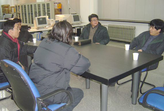 12月25日上午,招聘小组带着满身征尘,匆匆飞赴沈阳。鲁迅美术学院党政办公室房主任亲自到机场迎接,并作了周到安排。中午一赶到学院,副院长李宝泉教授、纪委书记李洪森立即出面接待,双方进行了热烈交谈,就筹建新校区、扩大办学规模、毕业生就业以及师资队伍建设等工作作了深入的交流、探讨,最后商定下午组织专场招聘会。李院长还及时召集有关部门负责人开会,布置具体工作。