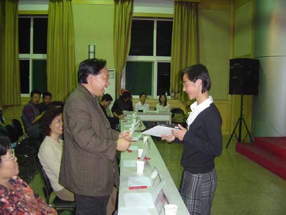 最后,评委评出了本次比赛的一、二、三等奖和优秀奖,领导给获奖选手颁发了证书和奖品,并与参赛者合影。王院长借此比赛对新校区规划问题作了详细解说,并对这次比赛的策划、组织者给予了高度表扬。