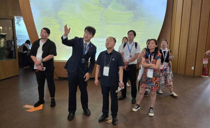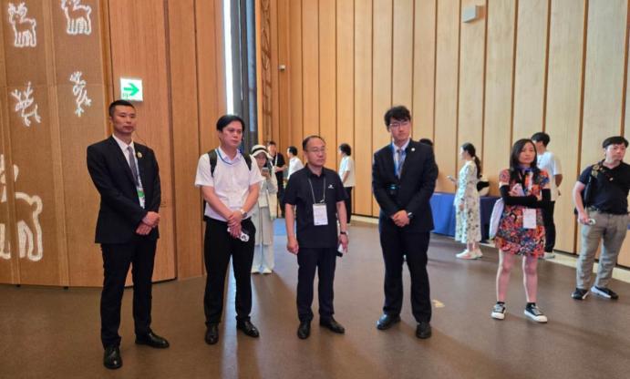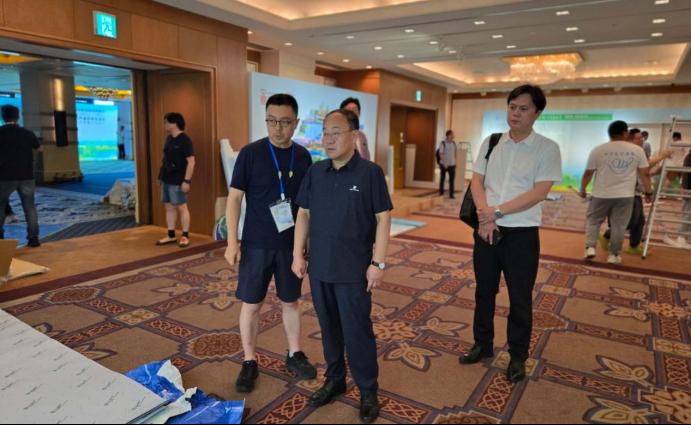 7月28日,2025日本大阪世博会中国馆山东活动周艺术总监、院长董占军检查指导山东活动周布展情况。期间,董占军就山东活动周开幕式现场的视觉氛围营造、形象点位布局、礼品纪念品设计,以及在中国馆主展区现场的展览展示模式、主要领导巡馆流程、室内外展项调整及运营服务等进行具体指导。