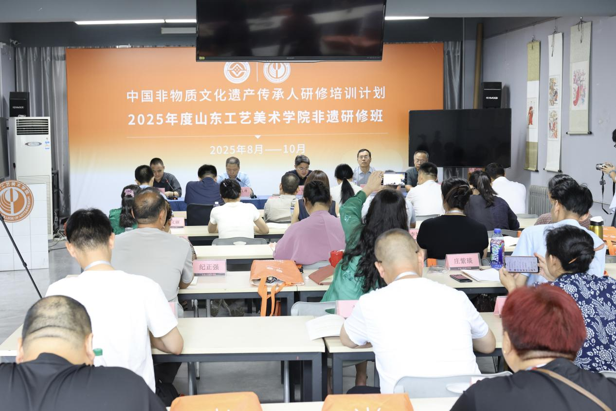 据悉,本期研修班聚焦“非遗系统性保护、可持续发展”,推动“创造性转化、创新性发展”,通过校企合作促进传统工艺与现代技术、设计及生活的融合,助力非遗传承人提升技艺、升级品牌,增强山东传统工艺竞争力,服务乡村振兴。课程分理论交流、考察研讨、创新转化三阶段,邀请多领域专家,以“强基础、拓眼界、增学养”为原则,通过理论学习、实践创作等方式,帮助传承人把握行业趋势,实现非遗创新发展。