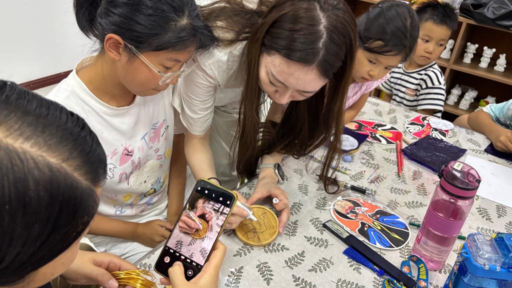在烟台市,产教融合青岛基地的武倩与张晓林两位老师带来了一场别开生面的非遗盛宴。清晨的阳光透过玻璃窗,为活动现场镀上一层温暖的金色。京剧脸谱绘画区,武老师正手持画笔,细致讲解脸谱色彩的象征意义:“红色代表忠勇,黑色象征刚直......”话音未落,学员们已迫不及待地拿起画笔,在素白脸谱上勾勒属于自己的“国粹印象”。在掐丝珐琅制作区,张老师将传统工艺化繁为简,带领学员们体验“调色-掐丝-点蓝”的流程。年轻父母与孩子头碰头,共同创作属于他们的珐琅作品。活动结束时,一位家长捧着作品感慨:“这不仅是手艺的传承,更让我们找回了久违的亲子时光。”