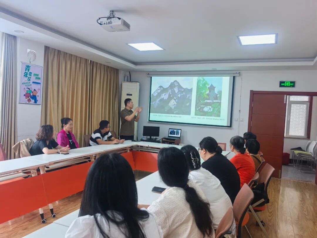 “你们看这幅画里的天空,不是单纯的蓝色,里面藏着一点点紫、一点点灰,就像咱们威海傍晚的天空一样。”造型艺术学院闫育帅老师指着画中的风景说道。在威海的社区课堂,闫老师带领居民梳理了油画的发展历程,领略不同时期油画作品的艺术魅力,更从“读懂身边的色彩” 切入,引导大家发现日常生活中平凡事物的美感。闫老师用通俗的语言将复杂的构图原理、透视技巧转化为化为生活化的语言,可实践的观察方法,让居民听得懂、有共鸣。“艺术不在于遥不可及,而在于培养感知生活细节的能力。威海的碧海蓝天、老街巷的砖瓦色彩,都是最好的艺术教材。”这种将专业艺术教育转化为大众美育的实践,正是文化惠民最生动的体现。