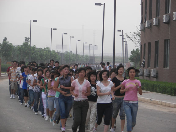 9月3日早晨7:00,06级学生顺利开展了新学期的第一次早操活动,学生处吴焕文处长对早操开展情况进行了检查。6:50,各二级学院均已列队完毕,学生处及各二级学院早操督察组对各班级的出勤情况、队列、精神风貌等进行了检查,整体情况良好。7:00整,06级学生正式开始跑操,学生队列整齐,精神饱满,英姿飒爽。