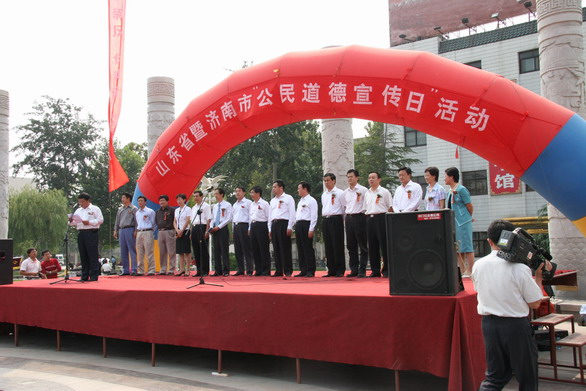 为纪念中央颁布《公民道德建设实施纲要》5周年,省、市委特要求举办“公民道德宣传日”活动,活动以“树立社会主义荣辱观,构建社会主义和谐社会”为主题,采取制作宣传展板,现场提供义诊及健康、法律、计生等方面的咨询服务和文艺表演等形式,集中展示了我市各行各业在坚持科学发展观、构建和谐社会、建设新农村等方面取得的成就。济南市、长清区有关部门及驻长清大学科技园区5所高校参加了活动。