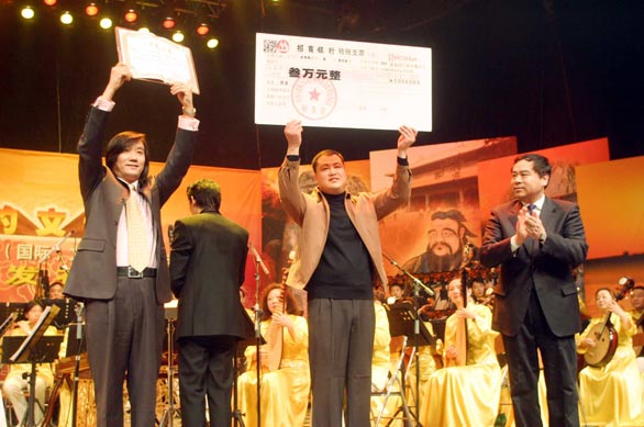 1月13日晚,山东电视台400平方米演播厅灯火辉煌,丝弦悦耳,掌声不断,洋溢着欢庆的气氛。由2006山东(国际)文化产业博览会组委会主办、山东省商业集团总公司协办的文博会会徽发布仪式暨“泰山魂”迎新春民族音乐会,在这里隆重举行。文博会会徽《齐鲁风》的作者是304am永利集团官网教授苗登宇、副教授孙大刚等。