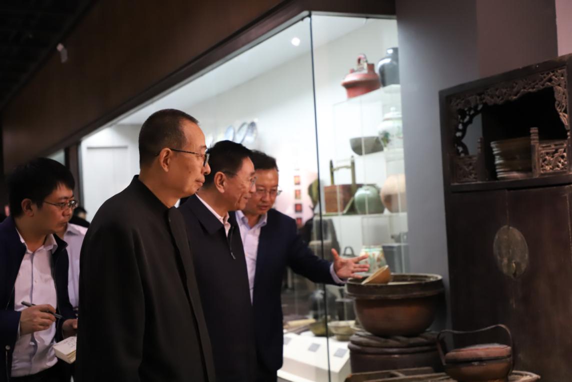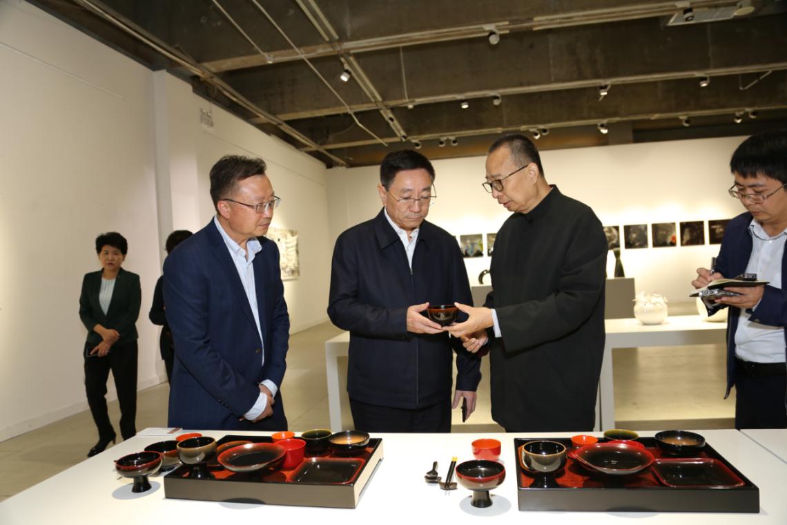 在民艺馆、刺绣馆,白玉刚参观了关于农事器用、康乐人家、衣裳锦绣、游艺乡风等方面的民艺藏品。功能各异的农具和柳编、美观舒适的居住空间、花样繁多的饮食器具、凝聚巧思的织绣和印花布、精美考究的节俗用品、趣味盎然的儿童玩具,引得白玉刚一行频频驻足观看。他对山工艺致力于民族民间文化的抢救保护与研究工作表示钦佩,希望继续保持优良学术传统,探索发现中国传统民间生活方式、文化方式之美,不断为国家传统文化保护和乡村文化振兴提供强有力的文化支撑。