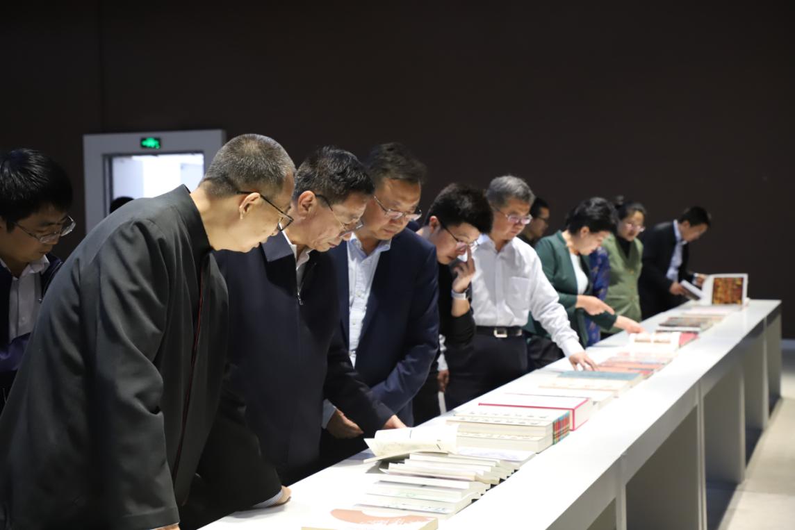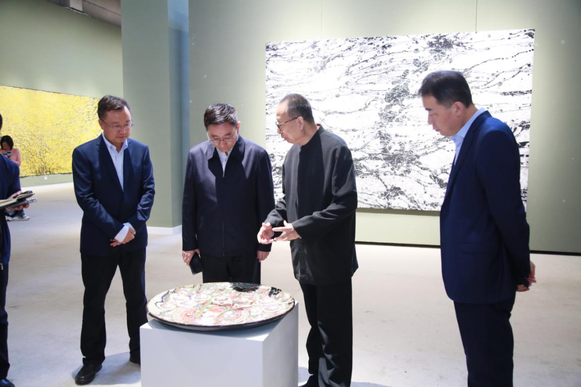 在美术馆,白玉刚一行参观了“大美颂赞 百年辉煌”庆祝建党百年主题创作展和师生作品展,对师生用艺术的话语解读中国共产党的精神谱系表示赞赏。在看到师生们创作出富有层次感的陶瓷作品时,白玉刚为师生们的艺术创意点赞,鼓励大家发挥艺术的想象力,创作更多高质量、有特色、深受人民群众喜爱的艺术精品。在文艺研究领域展区,白玉刚翻看《手艺农村》《中国民间工艺集成》等著作,仔细询问了学校有关传统手工艺方面的调查研究情况,他强调,中华传统工艺是一支源远流长的造物文脉,汇聚了中华民族的造物智慧,山工艺师生要自觉承担文艺工作者的责任,守正创新,以艺惠民,保护传承中华优秀传统文化。