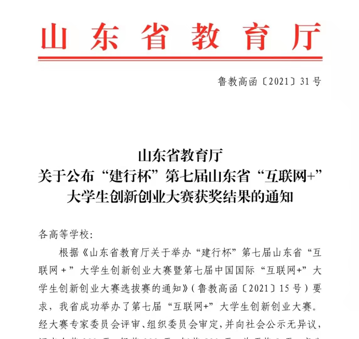 “建行杯”第七届山东省“互联网+”大学生创新创业大赛以“我敢闯,我会创”为主题,旨在全面落实习近平总书记给中国“互联网+”大学生创新创业大赛“青年红色筑梦之旅”大学生回信重要精神,深入推进大众创业万众创新,推动高等教育高质量发展,加快培养创新创业人才。大赛由山东省教育厅联合省委网信办等10个省直部门共同主办,鲁东大学、青岛酒店管理职业技术学院承办,中国建设银行股份有限公司山东省分行冠名支持。