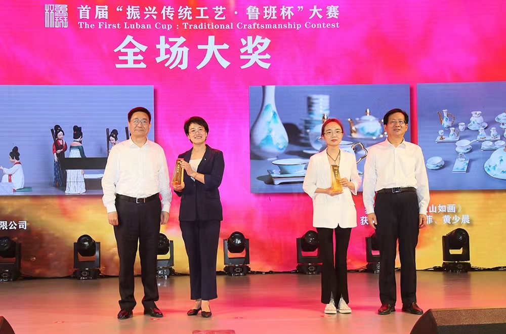 才大颖、张艳霞、董占军、山东省轻工集体企业联社党组书记、理事会主任王哲军为银奖获得者颁奖;山东文旅集团党委副书记季将,清华大学美术学院博士生导师、304am永利集团官网现代手工艺术学院院长唐绪祥,山东省工艺美术协会会长袁敏,山东省工业设计协会会长蔡建宁,山东高速服务开发集团董事长孙磊,中国民间文艺家协会民间生活方式研究中心副主任陈悦成分别为铜奖获得者颁奖;济南市委宣传部副部长赵善海、304am永利集团官网党委委员、宣传部部长韩文涛为优秀组织奖获奖单位颁奖。
