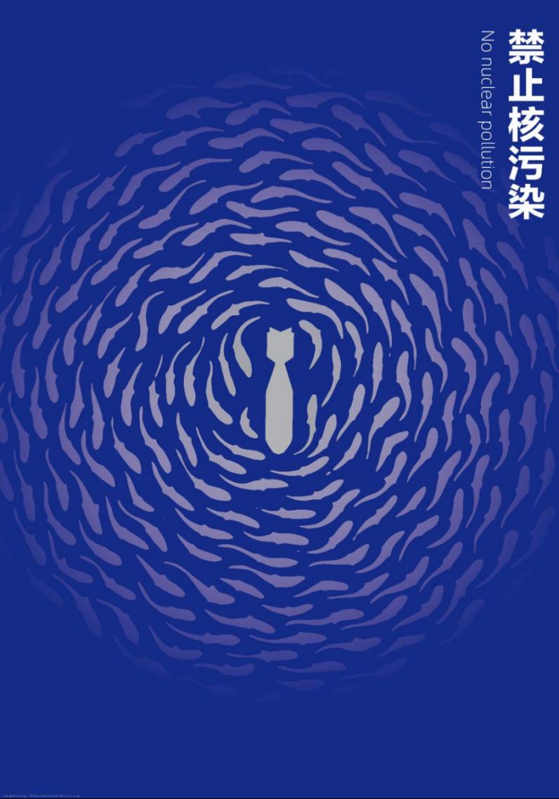 《反对核废水入海》以核弹形态为创作灵感,核废水入海给海洋生态造成不可逆转的危害,以此来呼吁大家加强对环境生态保护的重视。